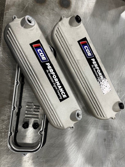 Very nice two-piece cast aluminum valve cover. Bottom stays with cylinder head so there is no oil leaking on to headers. Top casting has two 1" threaded holes for breathers, etc. Kit comes with 1/4 20 bolts for cylinder head and 5/16 18 for covers. OEM style spagetti o-ring gasket seal along with OEM neoprene base gasket. Sold in pairs only.